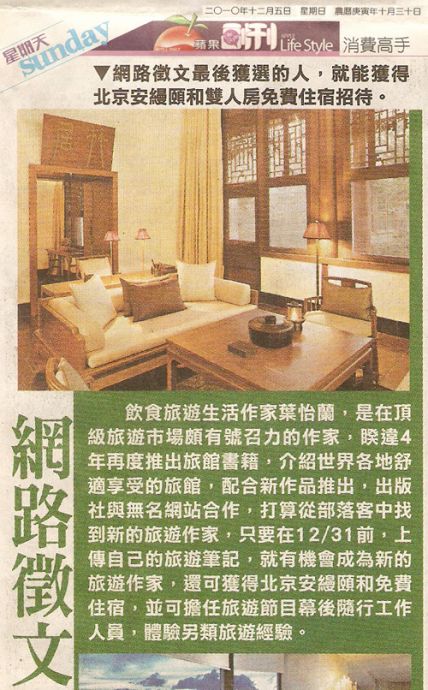 飲食旅遊生活作家葉怡蘭,是在頂級旅遊市場頗有號召力的作家,睽違4年再度推出旅館書籍,介紹世界各地舒適享受的旅館,配合新作品推出,出版社與無名網站合作……