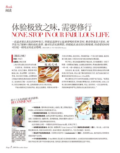 飲食跟生活的關係不僅密不可分,更是一種品味表現與生活態度,在此特別透過葉怡蘭的視野出發,這位研究飲食文化已有13年資歷的美食作家分享另一種更貼切於生活的美食樂趣……