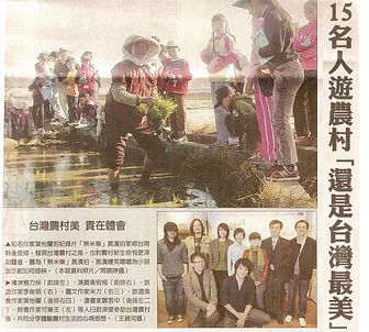 農委會昨日舉行《復得反自然—名人與台灣農村的交會》新書發表會,作家李昂、設計大師蕭青陽、知名旅遊與美食作家葉怡蘭、創作家可樂王、導演楊力州及電影《練習曲》男主角東明相等人,都加入這次農村體驗的行列……