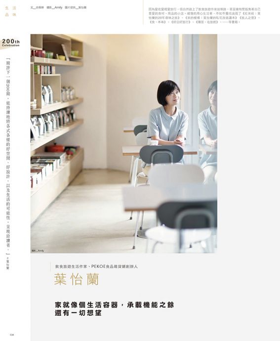 幾年前居家翻修,經歷過「斷捨離」的痛苦過程後,她挑選雜誌的門檻更高,通常入手的都是具有典藏價值的「特集」,她笑著說,自己是百分百的特集控,看到特集二字,便難以抵抗。「特集版本,把一個東西做得深入,通常達到專書的規模,但又比一般叢書更為精確有系統,去蕪存菁,留下最精華的部分……」