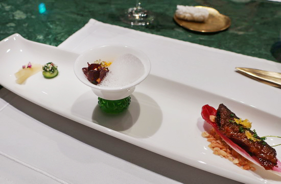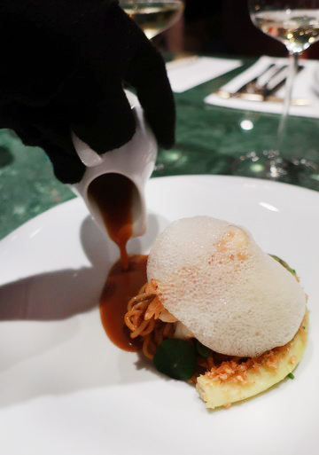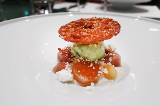 | 心宴第二訪。暌違一年,不出所料,已然以其獨樹一幟,扎實中菜眼界功底為本、同時涵納法菜思維以為革新之作,準準擊中米其林近年在台顯然越來越清晰分明的審美品味與立場,堂堂拿下一星以及年度開業大獎榮耀。 而我,出乎對中菜之本質神髓所向來抱持的理念,心緒情感雖一如上趟,胸中滿滿湧動著難以言喻的千思百感交集複雜,卻也同樣再次折服於這從形式到架構均大刀闊斧顛覆突破既往位上西吃框架與格局的廚藝表現。 是的。這回,明確感受到是,由主廚宗哥領軍、兼容跨世代中西廚人的心宴團隊的前邁步伐似是走得跨得更遠更大,曾經熟悉經典江浙杭州菜色,一一徹底大膽重構重詮成中西合融、精工細膩紛呈模樣: 比方招牌的溏心燻蛋,這次更往西方靠攏,佐搭的是絲綢乳酪、草花芽苗與丁、泥、醬、乾、凍等不同番茄元素,義式風情滿滿;前次浸於老鴨湯中的手工魚丸則變身義大利餃:東星斑菲力魚漿拌入干貝泥、以片得飛薄如紙的白蘿蔔與竹筍包起,配以高湯慢火煨成燕窩般口感的冬瓜,好高雅。 獅子頭也一整個轉化了形貌:融川風開水白菜概念,裹以白菜葉、浸以瘦肉老母雞金華火腿澄清湯、綴以竹午花膠,味醇湯澈,回味悠長。 無錫排骨選用杜洛克豬腩排,川燙浸煮靜置隔夜再煎炸而後燒滷,醬汁結合三種醋:米醋、鎮江醋與巴薩米可醋,最後步驟還以菊花炭燻,並夾入糖漬檸檬片同入口,從質地到味香層次皆是遠遠超乎傳統原作的活潑多端多亮,一嚐難忘。 |