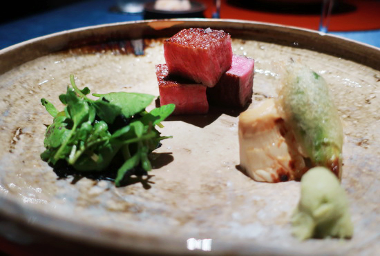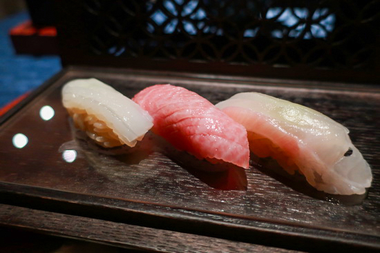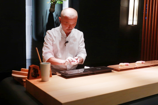 | 「這,不是江戶前壽司吧?」—— 開餐未久,心中有個小小疑惑聲音如是響起,然後,隨著道道菜餚陸續送上,心中的答案越來越分明。 這是赫士盟餐飲集團繼「祥雲龍吟」之後的日菜新作,延請曾獲新加坡米其林一星、以正統江戶前壽司為標榜的「OSHINO 」主廚押野亘一郎來台落腳,開設了「亘一郎 KOICHIRO」。 然而原地開張,受既有空間條件所限,無法以傳統板前型態當堂逐貫上菜,促使押野主廚大刀闊斧從呈現方式與流程變革,一方面藉由特製木盒盛裝、客人自刷醬汁等方式盡量減少壽司端送過程中溫度與風味的流失,一方面在每組壽司間穿插入高比例的割烹/會席菜,以豐富享用體驗。 而在我看來,這「因地制宜」結果,卻反而創造出獨樹一幟,合壽司與料理於一、活潑潑意趣盎然的嶄新形式。 尤為驚艷是各道生熟食料理的表現,手法精細、火候質地可圈可點,元素語彙組合新穎有巧思卻洗練舒坦不繁複,在地食材的擷取融入也自有見地。 比方典出蛤蜊冬瓜湯的椀物 ,鮑魚、冬瓜、紅鳳菜、山椒葉交織出清鮮雅逸之韻;甚得我心的焗烤毛蟹,蟹、甜豆與京都石野白味噌蛋黃醬芳醇雋永和融,再點入幾滴檸檬之酸將味覺明媚打亮。 香魚與和牛極好,前者,沒吃過龍吟時期膾炙人口之作,然此尾香魚,高明選材、處理、薄鹽炙烤成酥潤甜柔甘香,擊節叫好;後者低溫烤得外脆脂腴肉甜,佐以綠竹筍幽庵燒、晚香玉筍天婦羅與海苔西洋菜,蔬牛皆美,回味綿長。 |