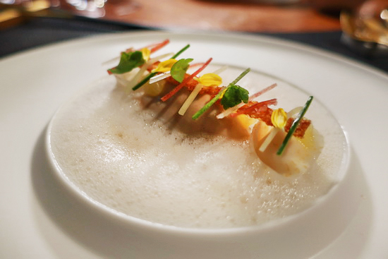 | 之前說過,因平素多在家裡吃飯,外食純為打牙祭,遂而甚少頻繁造訪特定餐廳;然每每一段時間暌違後再遇,若得見大步蛻變前邁,往往更多幾分驚艷。而此番在 La Vie,便是這樣一回緣會。 和 Xavier 主廚是第三次見了。2022 年初邂逅在高雄,當時,頗動心於他那優雅細緻中所同時流露的、對素材運用與風味組成的巧思慧黠;2023 年,La Vie 在台北開張,可能因餐廳路線與價格設定緣故,風格丕變……「形式與風味更往歐陸本格經典靠攏,素材、作工、技法堆疊雕砌繁複緊湊,工筆濃染,雖覺若能灑脫放開些更好,但感受得到一意往頂級極致窮究追索的野心與宏圖,仰之彌高。」—— 食後記裡,我如是寫道。 這回,時隔兩整年,頗驚喜是,曾經的繁複緊湊放鬆下來了,然後,初見時的優雅慧黠回來了 —— 更貼切來說,是融二者之長的見山是山表現:精雕細琢工筆仍在,形諸於外卻是一派雍容明亮洗練,食材本色真味自顯。 首道前菜是典型之例:綠竹筍片與泡泡與澄清冷湯、干貝海瓜子塔塔、蛤蜊冰淇淋,海之清鮮與筍之清甜相層疊,再點以手指檸檬的酸亮與山椒葉的辛亮,美味得既明媚又多端。 接續其後的溫生蠔相對簡致:低溫 62 度烹得柔彈郁甜,佐以黃酒奶油醬汁、芹菜義大利餃,浸於醬中的西谷米與綴於其上的茗荷、黃瓜、辣根、金蓮花與脆餅平添活潑口感和味香。 藍龍蝦與澳洲黑面羊則是繁簡之合:主體的龍蝦與羊排純以高明火候烹得滑柔腴嫩,圍繞周遭的配菜卻是一派紛呈,果蔬瓜穀香料花草汁水油醬與多重技巧手法相穿插烘托襯搭,層次韻致華麗競放,回味久長。 |