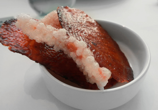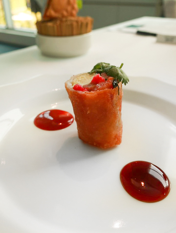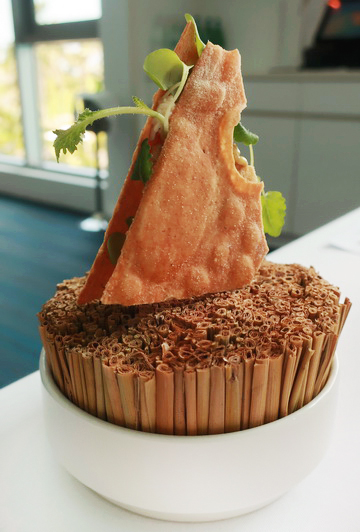 | 好奇妙!明明人在海畔,卻覺餐盤裡山林野氣盈盈綠意洋溢 —— 這是來自金澤的 ORIGO 餐廳與宜蘭頭城凱渡廣場酒店 archi 藝廚的聯彈餐會,由近年經常流連於金澤的 Chef André 江振誠主廚親身邀來,分別於宜蘭以及台中「飛花落院」、高雄「Ukai-tei」三地獻藝;首波於 archi 領先登場。 ORIGO,拉丁文「起源」之意,由曾於日義兩地諸多名廚門下歷練出身的義籍主廚 Matteo Alberti 執掌,一如其名,理念與廚藝皆一意以風土與自然為追求,從在地孕生、透過不同層面與方式展現在地。 果然一席嚐來,印象最深刻是菜餚裡由來大地的飽滿食材存在感,蔬之芳蕈之野肉之濃海之鮮穀實之香,以及他於此中獨樹一幟別有洞見的詮釋和表現,甚得我心。 比方前菜的生蠔,裹以青海苔麵包粉酥炸後捲上海苔和紫蘇葉同入口,苔香葉馥蠔甜,好美味。櫻桃鴨茶泡飯也喜歡,鴨肉以稻燻,佐以鴨湯、蕈菇、糙米與龍蒿油,渾樸野氣習習,回味無窮。蝴蝶麵由兩方攜手共演:ORIGO 配九層塔芥蘭青醬,archi 則是烏魚子香辣奶醬,綠與紅、山與海交相映,從滋味到顏色皆別有意趣。 甜點尤讓人激賞:義大利脆餅夾無花果冰糕,滿灑的風乾無花果粉平添青綠草本芬芳;水果大福則竟然包的是蓮霧,清脆清甘,與細膩溫潤白豆沙柔婉和鳴,大驚艷! |