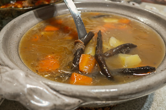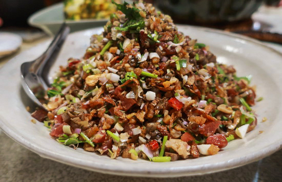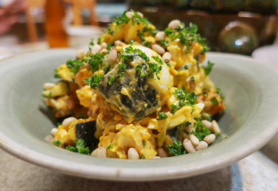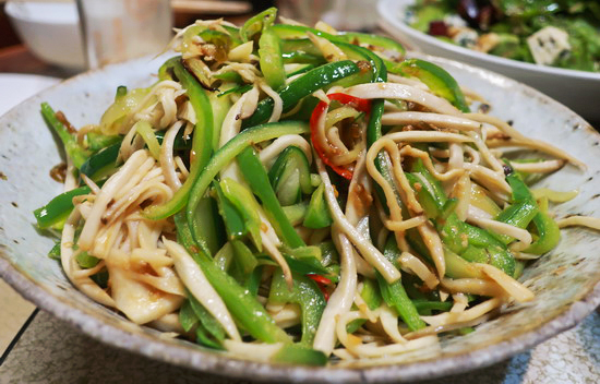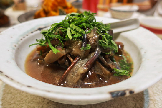 | 再次來錄徐仲的 Podcast,然後,理所當然,再次蹭上莉莉姐的餐桌。這回更加碼,莉莉姐與同以好手藝聞名食圈的徐仲太太依珊兩人聯手,一整桌豐盛澎湃。 莉莉姐手藝依然懾人,也同樣最著迷是她的蔬菜,特別一道青椒杏鮑菇炒味噌辣椒,青椒的奔放辛香在菇與味噌的襯托下一整個清脆爽勁甜美芬芳,在所曾吃過青椒料理中可謂名列前茅。依珊的日風家常菜也好,尤愛煮茄子,很溫柔的潤甘,回味悠長。 |