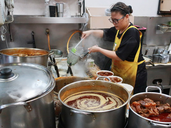 | 素愛牛肉麵,沉迷程度,幾乎每一兩週便要吃上一回,且還隨日常行腳不斷四方蒐覓追獵新目標新食點,遂每常有歡喜新邂逅。 此為天母大排長龍超人氣牛肉麵店,慕名多年,湊巧日前傍晚路過發現難得隊伍還算短,便興沖沖登門一嚐。果然無負口碑,份量很夠意思,牛肉塊塊碩大但軟嫩膠綿,與濃勁湯頭旗鼓相當,整體味香口感雄渾飽滿如一記重拳;榨菜肉絲麵也好,湯鮮味醇本格風範。 有趣的是果然一如傳聞,兩人胃納小根本吃不完只得打包;結果才剛舉手,只見服務阿姨迅疾奔來從圍裙火速掏出塑膠袋、一眨眼已經妥妥全裝好,莞爾而笑。 |
