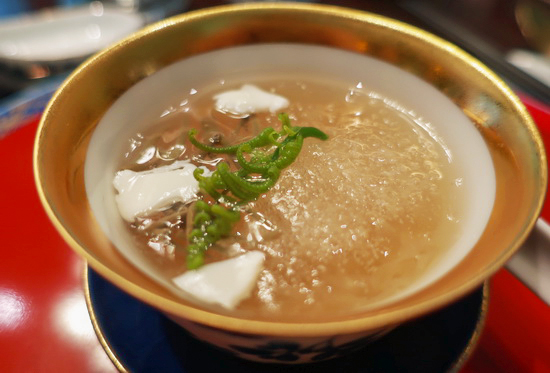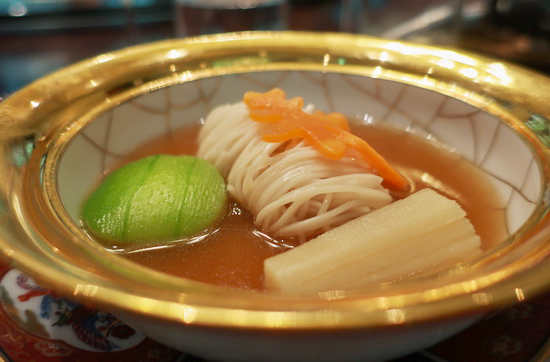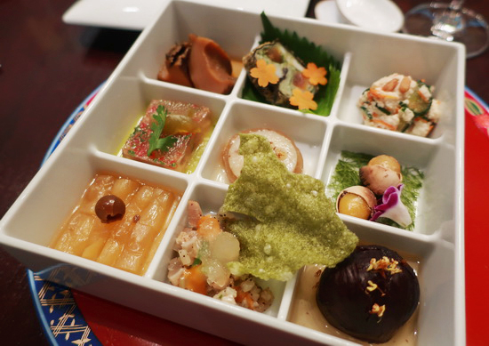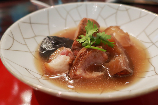 | 數年一會山海樓,這個我心目中於台菜 Fine Dining 的傳承、復刻與探索之路上始終走得既堅守本格又奮勇與時俱進的所在,每次再見,都有耳目一新領會。 而這回,一舉跨步百年,以日治「大正浪漫」時期為主題,裕仁太子訪台御宴以及當時西風東漸氣候下的和洋食潮,都成創作揮灑素材。 於是從中嚐出,台菜台味的另重嶄新格局面貌:既有源有本、精工精巧,卻又同時活潑新穎多端變化。 喜歡開場的金湯素燕盞:雪燕(雪燕樹木髓分泌物所成之宛若燕窩的膠狀物)、白木耳融匯於滴雞精高湯裡,鮮潤澄雅,些許人蔘鬚微妙提點出雋永的草本木質芬芳。 九宮格形式的如意珍寶盒兼容東西素材技法:烏魚子捲、鰹魚塔塔、Terrine 雞凍、松子豆腐、蜜栗子......從視覺到味香口感皆華麗紛呈。 經典煙燻白鯧加入阿里山咖啡豆同燻、配以破布子剝皮辣椒鳳梨莎莎醬,台南薑汁番茄精緻版的切片番茄佐薑汁凍、李子蜜餞與黑糖冬瓜露,分別紀念 Typica 品種咖啡樹與黑柿番茄引入島內的初始年代。 山海乾坤豬腳麵線脫胎自「蓬萊閣」名菜滿罈香,卻別出心裁以台灣頂級宴席菜的套疊手法表現:整支豬腳去骨、填入車輪鮑、花膠、鹿筋、婆參與椴木香菇同燉燴,泌出的滑稠鮮湯再浸入時蔬和麵線同享,豐甘醇郁,美好壓軸。 佐酒也極出色,知名侍酒師 Thomas 操刀,緊扣百年大正時代與風土主題,深具歷史意義的池田甲州氣泡酒、「光風霽月」純米吟釀,以及陳千浩老師釀造的輕盈優雅在地產巨峰葡萄紅酒「春風」,還有加碼的本產黑糖燒酎和一瓶難求深沉甜蜜「埔桃酒」,各與料理水乳交融相得益彰,同樣難忘。 |