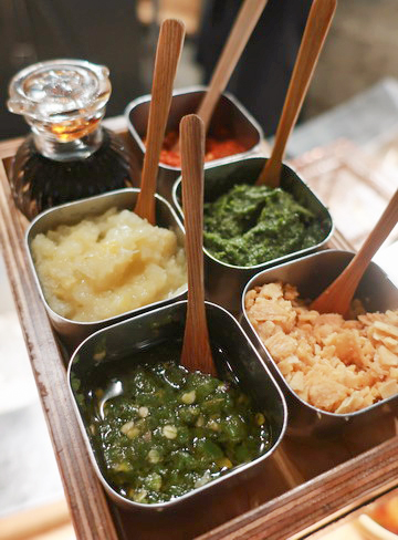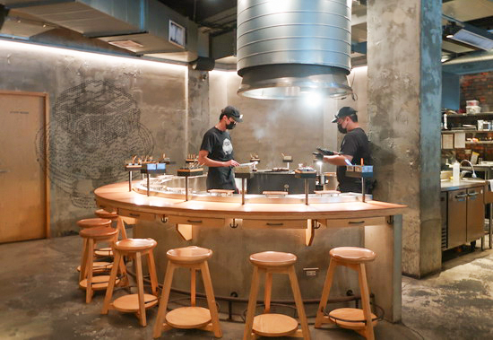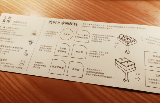 | 偶然路過發現竟沒排隊,加上午餐時段還提供兩顆漢堡排的小份量套餐,便入內嚐嚐。 口味還不錯。然覺最有特色是形式本身,從極具臨場感的吧台現烤現烹演出、多樣配料與吃法建議,以至環環相扣的享用流程設計,頗有意趣。 |