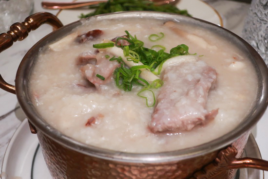 | 偶然撞進、家附近百貨公司附設烤鴨餐廳。可單點半隻且還能眼前現場片鴨,片皮以外其餘吃法則以加點方式行之,是兩人即使胃納小也能輕鬆無負擔吃烤鴨之所。 嚐來則從鴨皮鴨肉、鴨骨粥與另點的炒青菜都有一定水準,還挺合味。 |