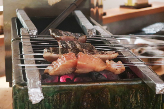 | 「早該有這樣的店了!」坐上料理檯,我忍不住如是喟嘆。 素愛日式朝食。每每行旅日本下榻溫泉旅館,比起豐盛澎湃的會席晚餐來,由白米飯、烤魚、漬物、豆腐、各式小菜與味噌湯組成的早餐,才是真正我的最愛。 甚至不需到菜色紛呈多樣、儀式感滿滿的溫泉旅館等級,近年在日本特定城市和區域逐步蔚成氣候、於早餐時段供應的烤魚定食專門店,更親切平易、真淳踏實,也甚得我心。 去年鎌倉行便一連走踏兩家:包括有穿梭來去江ノ電列車景致為伴的「ヨリドコロ」以及以素材之天然講究聞名、一開店即大排長龍的「朝食屋 COBAKABA」,特別後者,不管是甘鮮潤嫩的烤魚、柔綿香糯的五穀米飯以至清甜蔬菜滿碗的味噌湯,都令人難忘。 於是,滿懷思念裡,欣見朝炭終於問世,真有說不出的歡喜,當下立即前往一探究竟。 雖同以烤魚定食早餐為標榜,然朝炭的形式規格顯然不同一般:出自豊漁集團之手,挾初魚系列累積至今的進貨優勢與近年在 Fine Dining 領域的經營,由出身「祥雲龍吟」與「盈科」的 Eden 主廚執掌,從食材、菜式到呈盤都見不凡用心。 印象最深刻是我視為日式朝食靈魂核心的白米飯,混合北海道七星米與富山魚津米、配以特別養的水和土鍋直火烹煮,滑柔綿彈,點上主廚手製、美味得讓我忍不住慫恿應該裝罐量產的香菇海苔醬,當下瞬間扒光光。 烤魚大手筆以一整座雲井窯烤爐+備長炭燒烤,自製青花魚一夜干以鹽烤、正當令的鰆魚做幽庵燒,火候調味精準細膩,各道小菜也做得精緻,誘得人失心再啖一碗飯,大飽! |