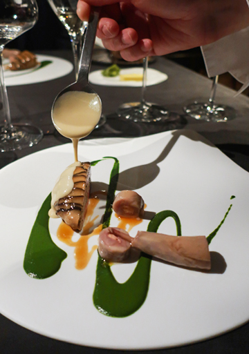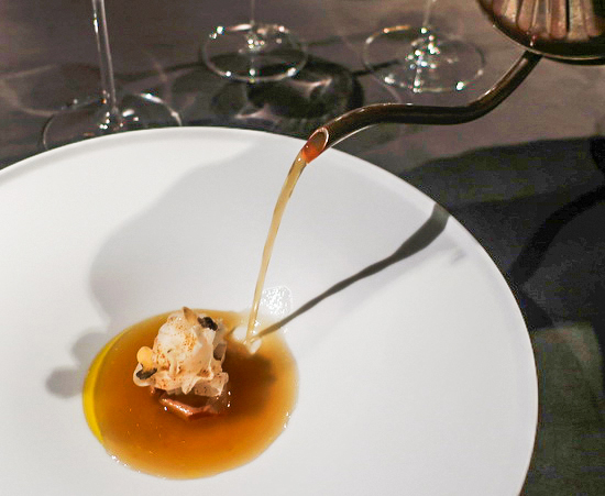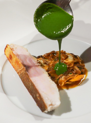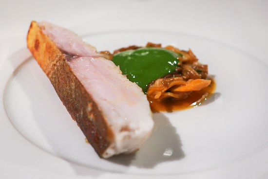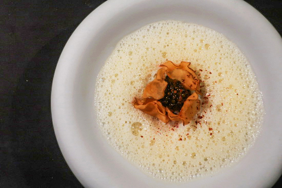 | 話說自 2023 年春、Chef Kei 古俊基接掌 de nuit 之初首嚐後,傾心之餘一直很想再回訪;然而食程滿滿,竟一路延宕至今才終於再度登門,然後一如所料,比上次更喜歡。 Kei 主廚的菜一如先前所感:「手法簡約、風格細緻、火候高明精準,吃來舒坦悅爽」,再細細品味更明顯覺察出,歷經三年錘鍊後的更從容圓熟、簡中見細節。 生蠔冷前菜是尤為難忘的一道:諾曼第生蠔製成冰淇淋,佐以柴魚昆布高湯凍裹茴香泥,配以微藻奶油與海葡萄,海味潮香晶亮悠揚綻放。 菊芋熱前菜也好:菊芋脆片、菊芋與荸薺丁、菊芋蛤蜊高湯泡泡,配上松葉蟹、黑巧克力和魚子醬,深冬大地之味款款,濃暖中見潤雅。野生竹午煎得酥嫩,搭配炒雞油菇魚骨蔬菜醬汁、海瓜子與油菜綠醬,魚鮮蔬芳,韻致綿長。 鵪鶉主菜則是細工經營之作,腿肉去骨填以黃酒鴨肝,胸肉鑲疊入羊肚菇與雞肝慕斯,佐上蘑菇黃酒奶油醬、巴西里青醬以及鵪鶉高湯汁,味香口感層次紛呈多端。 菜好、佐飲也極合心:葡萄酒皆是清芬纖雅之選,無酒精調飲則極難得都調得輕盈清透不搶戲不張揚,一一留下足夠的餘地和空間,與菜餚和諧交織對話,回味再三。 |