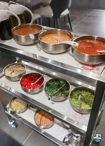 | 香港名店來台,多達二十種湯底讓人大感好奇,遂來一試。 點的是招牌的秘製沙嗲湯與口碑甚佳的洋蔥牛肉湯,前者濃郁辛香後者清澄鮮甘。火鍋料則不僅類型品項包羅寬廣,且頗多都可只點半份,即使只兩人也能吃得豐饒;最合我心是有多樣內臟與蔬菜選擇,暢快大飽。 |