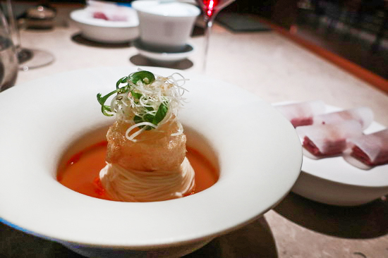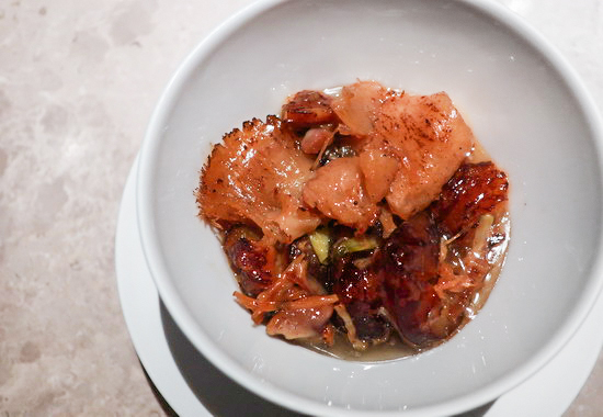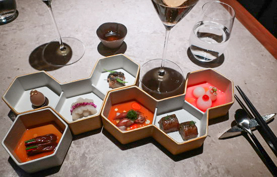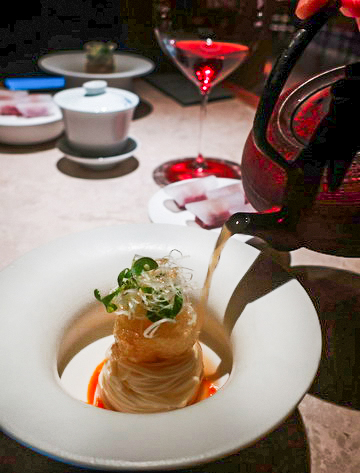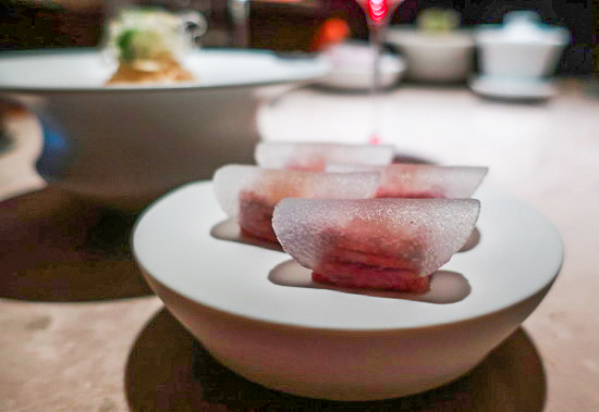 | 近來回訪 Fine Dining 餐廳,總常湧現難以言喻的複雜心緒 —— 特別是在正當嶄露頭角的年輕主廚處,眼見其一步步在創作上廚藝上越臻飽滿圓熟漸登顛峰,卻遺憾遭逢此刻時代氣候轉變、Fine Dining 食潮走向沈潛,讓人些許萌生慨嘆不捨之情。 Circum- 便是其一。暌違兩年又兩個月,Leo 主廚的大步進境,讓人滿懷激賞歡喜。 延續自開店以來一路至今的華魂法菜形式,本季菜單以「非物質文化遺產」為題,從華人飲食中的種種料理與飲食智慧技藝為發想, 藉此專注凝定於菜式技法本身之鑽研展現。 而一席嚐來,最直截感受是,2023 年底初開幕首訪當時仍多少猶存的 T+T影跡已然淡去,也更少了雕飾與炫技,菜式與手法乍看簡致洗練、一無冗言,然內裡卻點滴涵藏著綿密思維和重重細工,食之折服。 開胃菜的「七巧板」道道從形到味皆精皆美 ,特別鴨舌,滷、浸、去骨填入焦化洋蔥泥,配以冰糖醬鴨汁,細膩精工,好個開場。 佛跳牆的法菜重詮之作多年來吃過不少,Leo 主廚取法的是較少見的乾烹版:海陸乾貨泡發燴滷至軟柔潤透,巧妙鋪墊於滑嫩蒸蛋上,濃暖鮮甘,獨具一格。紫蘇鰈魚天婦羅佐以發酵剁椒與新鮮辣椒製成的辣醬,配以香料油和臘八蒜奶油醬,中與日與法之技之味高明相交揉,風味口感層次多端。 乳鴿尤是各種素材與工序工法層疊的一道:去皮鴿胸以白芷、川芎、當歸與玫瑰露酒浸透後再裹以湯葉、佐搭雞湯酒汁,鴿腿則去骨填入鴿柳與鴿翅再灑花椒與白胡椒酥炸,其質精巧細緻、其味雋永多芳。 餐後茶點則是意外之喜,信玄餅、練切、饅頭……一一盡是在日本和菓子的本格正宗基礎中融入台材台味的傑出之作,美好終曲。 |