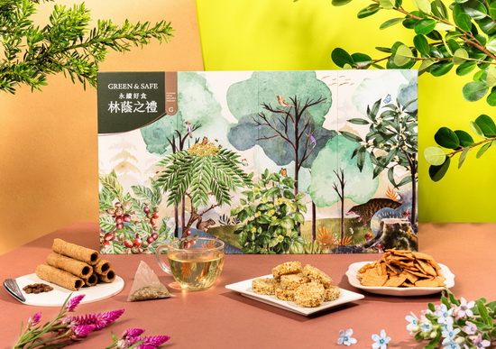 「永續好食 林蔭之森禮盒」是今年 GREEN & SAFE 最具代表性的永續作品。四款產品皆來自對土地友善的耕作方式、保留傳統工法與低加工原則,透過森林友善的食材,將 ESG 的理念落實在每一口風味裡。
