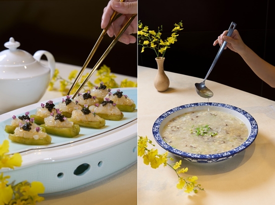 保師傅對「熬湯」的執著近乎苛求,絕不馬虎的他總是提點廚藝團隊熬湯細節,此次饗宴多承自大師親授的製湯技巧,引領賓客追憶並續寫保師傅風味。如:「拆燴雙筍鮮魚羹」採用獨門雞湯蒸煮綠竹筍及茭白筍,細緻的鱸魚丁與雙筍丁交織出層次豐富的口感,初嚐原味感受蛋花與香菇丁的溫潤滑順,接續加入鎮江醋與金華火腿末提鮮增香,整體風味更為昇華,鮮味層次分明。經典的「清燉白菜獅子頭」,則體現了慢火細燉的真功夫,手工獅子頭綿柔細緻、鬆軟化口,覆上蒸煮至近乎晶瑩剔透的白菜,融合頂湯火腿的湯體清雅甘醇,溫潤入喉,同時致敬保師傅那份厚實而純粹的初心。