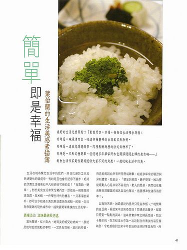 「對我而言,幸福,每每從生活裡去尋找;有時是一碗湯清肉白、味道卻極豐碩的台南虱目魚肚粥,有時是一只形式極簡單、但經過多年磨娑而木色潤澤隱隱生暉的老木碗……」