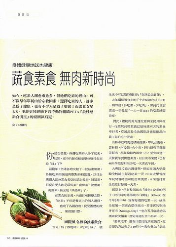 「蔬食,不只是一種食物選擇,而更可能是一種價值選擇,一種生活態度!」葉怡蘭觀察,飲食、生活形態的轉變,正反應了現代人對環境生態、對動物生命的醒覺與思考……