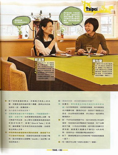 兩位經典法菜的同好,一聚頭就展開七嘴八舌的飲食經。由近幾年法國菜的發展過快,分子料理只有「Shock!」不能叫人記住味道,到高麗菜過年前後貴了多少……