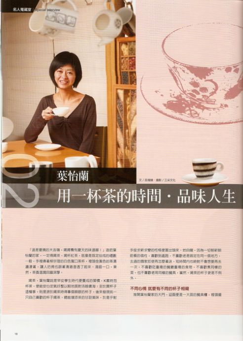 造訪葉怡蘭的家,一定得喝茶,喝杯紅茶,就像是既定俗成的禮數一般,手裡捧著柳宗理得白色寬口茶杯,裡頭金黃色的茶湯盪漾著,讓人彷彿也跟著清澈澄透了起來。清啜一口,果然,茶香溫潤回韻深厚……
