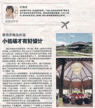 蘇梅島機場的入境大廳是一座一座的木造巨大涼亭,整個是通透的,在木構造的造型和工法設計上,都看得出經過精心設計--融合了傳統熱帶亞洲島嶼建築格式和現代機場建築功能,很令人眼睛一亮……