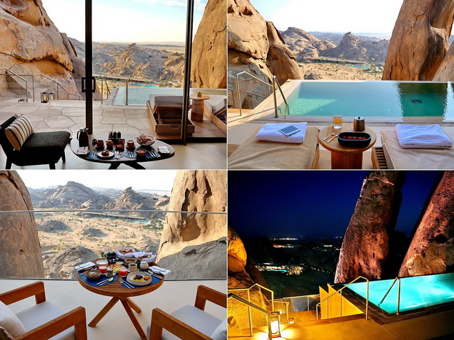 這Villa,一整個居高懸垂於絕崖上、斷壁間,兩側奇石峻岩雄渾高聳環抱;無論身在室內戶外任一角落,前望,石與山與谷與原相互交織構連成一幅壯闊恢弘絕景奇觀,每一瞥都是懾人絕美。