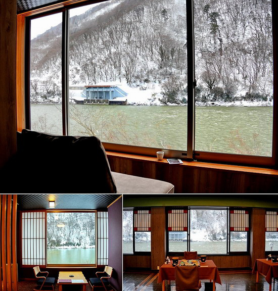 風中雨裡乘遊船而來,戀著這恢弘秀麗山川河谷景致,遂不急著離去,選在川畔名宿「高見屋 最上川別邸 紅」落腳住下,一日夜時間,將這雪裡山水痛快飽看。
