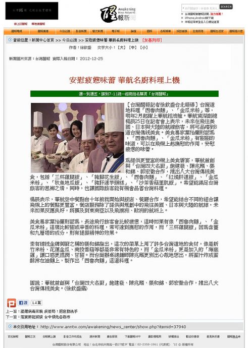 台灣道地料理2013年2月起躍上華航經濟艙。美食專家葉怡蘭認為,「西魯肉麵」、「金瓜米粉」有甜甜的味道,可以在飛機上起撫慰的作用,安慰疲憊的味蕾。而「三杯雞腿飯」因為含薑和九層塔的成分,則有提振精神的效果……