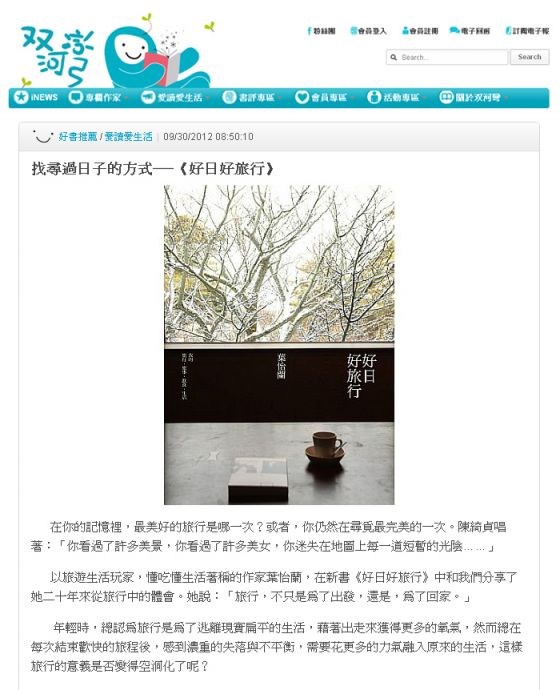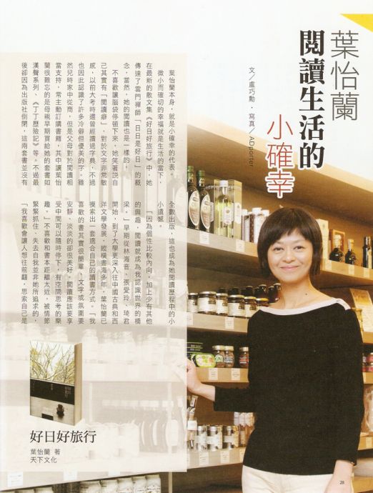 葉怡蘭本身,就是小確幸的代表。微小而確切的幸福就是生活的當下,在最新的散文集《好日好旅行》中,她傳達了雲門禪師「日日是好日」的概念,當然,她的閱讀也是一樣的……