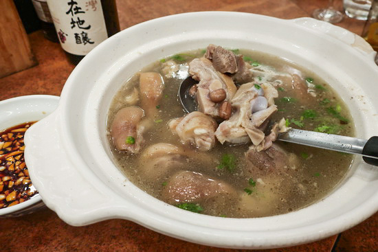 果然道道銷魂。最愛是土豆豬腳,乍看清澈無華,然花生之清香、腳之醇腴,在些許胡椒與香菜葉的提點下,湯裡共融成高遠悠長的芳甘,連喝好幾碗!