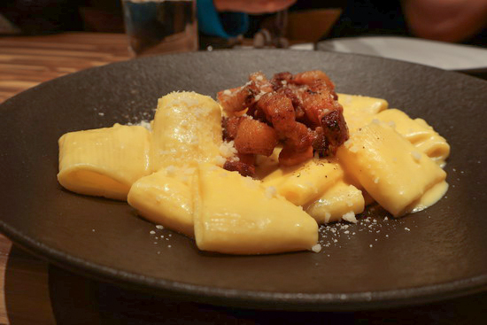 分外驚艷是各色麵點,尤其這道培根蛋水管麵,麵Q醬香,自家製豬培根彈脆甘美,吃得滿座讚聲連連。