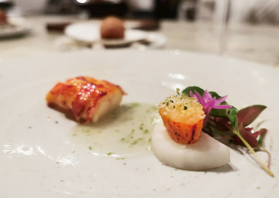 而此次再訪,特別喜愛是這道波士頓龍蝦:蝦身刷二荊條辣醬烤、蝦螯配香料麵包粉,佐搭無菁與檸檬昆布高湯汁以及脆炸甜甜圈配龍蝦奶油醬汁——比他的過往菜色似更簡約,卻是滋味香味既紛呈又凝練,好生迷魅。