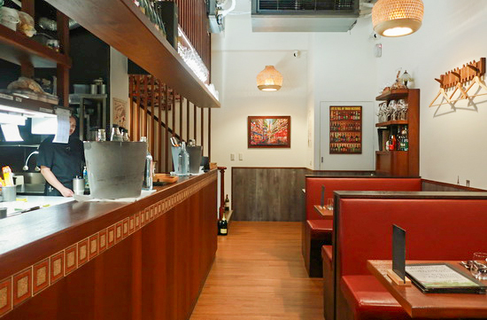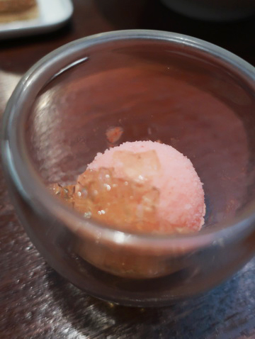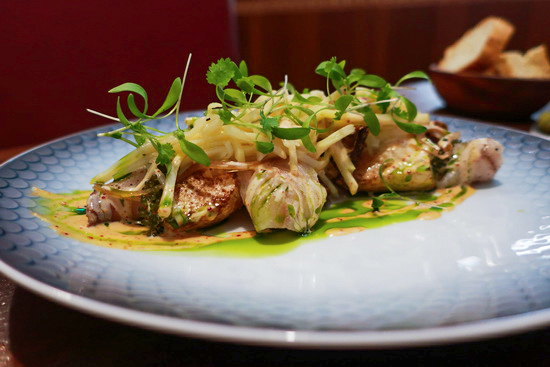 | 喜歡 NIBBON,理所當然,該來試試系出同門的 MINIBBON。 而有趣的是,原本以為應與此刻正時興的各家法菜 Fine Dining 名店跨界餐酒館相似,會是一任回歸回溯情懷的傳統菜掛帥,然實際上座後卻發現比想像中還更活潑多端,嚐得出是由來 NIBBON 的東西和融日廚法菜表現,卻明顯更灑脫放開,輕鬆率意中流露紛呈巧思與創想,吃來自在酣暢。 比方前菜的鰤魚與綠竹筍以及海鮮主菜的藍龍蝦:前者一微炙一炭烤,配以青蘋果絲、海葡萄、蒔蘿油與檸檬味噌醬;後者高明烤得滑彈柔膩近熟,佐上糖漬檸檬泡菜奶油醬,從香氣滋味以至層次質地都展現繽紛多樣變化。 近期限定的椪醋風味茄子中卷細扁麵好喜歡!椪醋、柚子與蘿蔔泥之酸甘香和中卷之鮮的交映交歡已夠沁脾,炭烤茄子的習習燻氣與蔬甜更添迷魅,美味得差點舉手央求續盤。 壓軸的和牛菲力佐花椒和牛壽喜燒醬汁顯然是先前 NIBBON 一會難忘的牛橫膈膜佐照燒醬的姊妹版,鹹甜醬汁與濃腴和牛悠揚繾蜷唱和、些些許隱隱花椒香將味覺畫龍點睛打亮,同樣回味綿長。 |