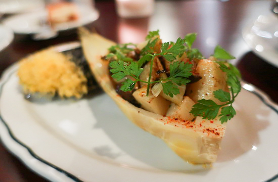 | 「其實,我原本希望,能再『低級』一點……」 席間,Kai 主廚前來問候,聽了我們的稱讚,突然意味深長地說了這句話。 這是 Chaud Doux,系出態芮 Taïrroir的法式小餐館,由何順凱 Kai 與同樣法菜背景深厚的林庭右 Leo 兩位主廚攜手打造。造訪之前看菜單:鄉村肉派、里昂沙拉、南瓜濃湯、烤雞、馬賽魚湯……當下會心一笑 —— 是的,一如許多許多一路攀上廚藝頂點的法菜主廚一樣,這兒所渴望追求與展現的,是繁華落盡見真淳的回溯回歸回望。 所以,完全懂得 Kai 心中所懷抱勾勒的畫面:是那種我每於歐洲走踏時最愛的、隱於鄉郊或城鎮靜巷的小小餐館,桌椅有些年歲的斑駁、燈光暗暗卻很有味道,座位近得彷彿略抬手、肘臂便要撞上隔壁桌,卻是氣氛熱鬧歡洽自在酣暢;半瓶量葡萄酒用粗粗厚厚手工玻璃壺盛裝,菜餚則一派渾樸傳統,鄉野之氣滿滿。 但這樣的餐館事實上由來自在地風土與歲月的點滴孕生凝煉,難以易地搬移複製,既然立足千山萬水之遙的台灣,自有其因地制宜面貌; 更何況還出乎經過充分Fine Dining 歷練洗禮的主廚與團隊之手,理所當然更多幾分雍容精緻優雅。 而這傳統與精緻之合,尤其淋漓表現於料理中 —— Chaud Doux 的菜,有著法式鄉村小餐館特有的濃厚,卻又隱隱藏著細緻的素材鋪陳、風味經營,濃中見層次。 比方他的紅魽生魚 Carpaccio 和油封綠竹筍,前者除檸檬汁、橄欖油外還有青醬、檸檬油醋醬,綴以發酵甜椒、墨西哥辣椒與蓮藕脆片;後者則配鮑魚、發酵蕈菇、當歸葉、生蘿蔔葉與 Mimolette 起司鮑肝墨魚蛋黃醬,皆屬看似清爽實則豐濃飽滿之餚,佐酒絕佳。 聖米歇爾淡菜除了經典的橄欖油與 chorizo 臘腸,多添了本產苦茶油的芬芳;配角的薯條削切得極細,經巴薩米克醋凍漬後再炸,拌以蒜油和普羅旺斯香草料,酥脆鬆綿裡透著既多端又雋永的馨香。 馬賽魚湯則果然忠實表現了當地固有應有之稠濃,然原本逼人的海味與香料感卻相對柔潤溫和了,遂更顯魚蝦貝的鮮美鮮甘。 爐烤雪巖雞好喜歡,是將柑橘奶油填入皮肉間的正統烤法,皮酥汁腴、腿肉滑彈胸肉嫩軟,佐搭淋上雞油的印度香料香米飯,味馥香冽,滿足大飽。 |