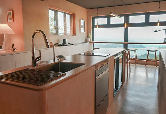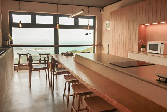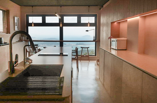 | 我想,應該是至今在台灣所曾住過,最愜心合意的民宿了吧!—— 怎麼可能不合意呢? 因為民宿主人,正是一手打造我的居家的建築師李靜敏。 所以對我來說,一如其名,來到這兒,真宛若回家一般,從理念概念、風格、美感、材質以至家具陳設,都無比熟稔相契。 完完全全體現了我在描繪小宅建構過程的《家的模樣》一書中所寫、我眼中靜敏向來之所長的:「空間的破題與處理:天光、窗景與生活、格局動線間呈現出流暢而緊密的連結和交映關係」,還有「色彩與材質運用:天然原色原質素材交織鋪陳成簡約凝練淨雅氛圍」;以及,我在長長十數年住居中所不斷感激領會的,因對生活作息本身的透徹理解和熱情而達致的合宜合理、安頓妥貼、處處細節。 當然,還因有了九份的秀美壯麗世界級山海絕景包圍,以所攬所歷景致言,無疑更勝歸家。 民宿位在老街底端,依山凭坡居高臨海層層而建;鬧中取靜地利,短短幾步路就能近享老街的熱鬧繁華、也能宅居房中悠然慢賞九份的晨昏日夕。規模小小,設施不多,選品藝廊、二樓茶室與開放廚房+吧台餐桌區外,僅少少四間客房,全數坐擁全幅開闊懾人窗景。 客房以四季為名、各具風致:「芳春」獨享一座大大露台,「朱夏」窗幅最大景觀最佳,面積最小的「金秋」適合獨旅且窗前就是櫻樹、春花夏綠盡收眼底;我下榻的「寧冬」則有幾分日本旅館「離れ」風致,獨立門戶、上下分層,和室、臥室、浴缸皆備。 而讓我分外玩味還有,靜敏作品裡向來豐盈的和風影跡,在此更顯鮮明:空間與家具尺度刻意往下壓低,安坐此中,不僅身足得能自在舒坦伸展,還令景與窗都更覺更顯宏大敞朗,整體自成一種沈潛穩靜的安定與寧謐,更加暢愜懷舒心。 |