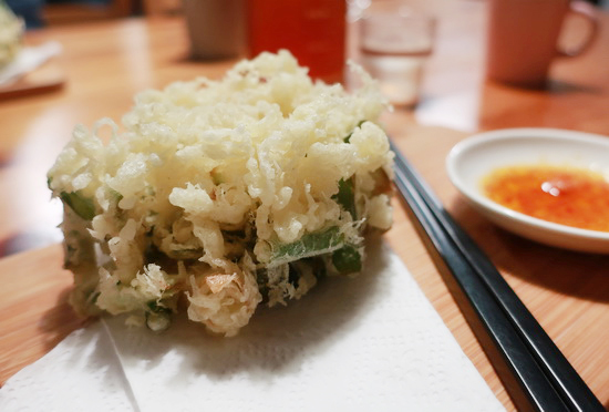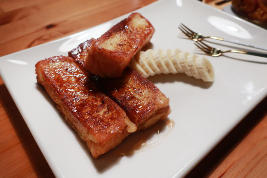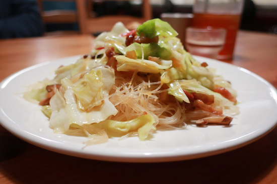 | 因下榻九份「回家旅宿」緣故,搜尋鄰近步行距離晚餐處時意外邂逅了這裡。私廚形式小餐館。餐點單純,卻皆是原非餐飲領域出身的店主夫婦長年鑽研錘鍊而得,從菜式到風味皆自成一格。 印象最深刻的是開胃菜的蔥餅,近似日式天婦羅作法,卻是量體碩大、蔥清甜、麵衣鬆酥充滿空氣感;炒米粉雖非為純米,卻極噴香入味鑊氣足;法國吐司則也跳脫時下正風行的隔夜浸透作法,保留了麵包體的香氣和口感,也喜歡。 |