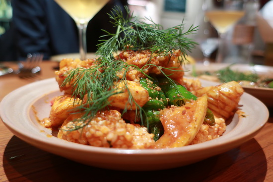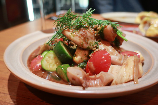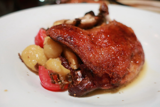 | 慕名多年、卻因不太好訂而遲遲未能登門的餐酒館,日前心血來潮發訊一問竟有空位,便興沖沖登門一嚐。 果然無負口碑。歐風傳統料理為本,融入亞洲台灣元素手法,還穿插不少熱炒菜;然思維創意雖紛呈,卻又吃得出扎實基本功,火候、質地與風味組成皆出色,整體展現出一種任情率意遊走於多端國界技法的自信自在,很喜歡。 出乎嚐鮮心情,忍不住點的都是混融菜:大愛參峇醬花枝漿油條蛋捲,好個天外飛來組合,蛋嫩滑油條脆香、花枝與醬郁鮮,滋味口感皆佳;精煉肉汁炒烏魚腱則汁濃腱彈鑊氣足,滿滿蔬菜平添清甘;油封鴨烹得甚好,外酥內潤柔,巧妙配以福菜麵疙瘩點染幾許活潑東方味道。 只可惜兩人胃納小點不了太多,理當再訪。 |