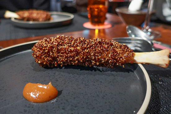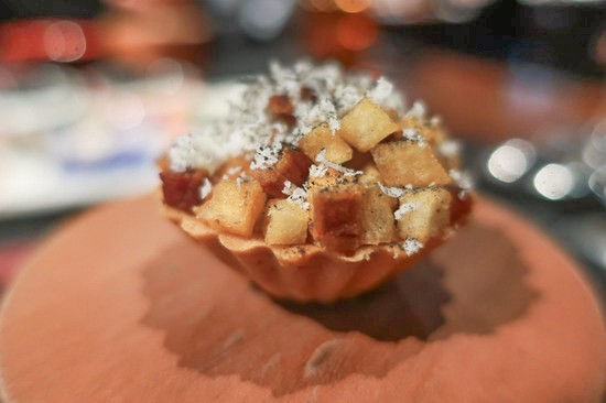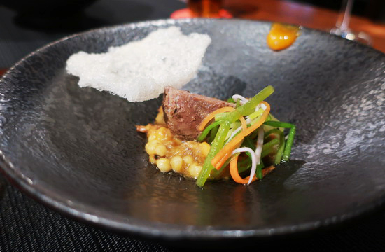 | 近十多年來風起雲湧的「台魂法菜」食潮,雖隨全球在地法菜發展的漸趨沉澱而不再獨占鼇頭,卻無疑仍在本地西菜 Fine Dining領域佔有一席之地,加上還有《米其林指南》的加持青睞,聲量與重要度依然不可小覷。 前年開幕的 Tableau by Craig Yang 可算其中頗受矚目的一家。出身 RAW 門下的主廚 Craig 楊子毅來自台菜辦桌家族,標榜以「法菜技法重構台灣辦桌精神」;觀望多月,見近期推出囊括開店以來最具代表性菜色的限定特別菜單「回席」,當下心動,便來一試。 既是集結歷來備受歡迎精選菜餚,果然道道從思維形構到創意表現皆完整飽滿扎實有力道,且可喜是並未流於過度堆疊雕砌崢嶸碰撞,風味清晰、嚐來爽朗舒坦,頗見潛力;價位也相對平易,與刻正走向輕鬆輕盈的 Fine Dining 流風相符合。 前菜的干貝刺身組成簡簡單單,然柑橘、白葡萄、芝麻菜和檸檬葉油的組合,嚐來活潑明亮又鮮甘。法式燉肉典出傳統鄉村菜「Pot-au-feu 火上鍋」,豬頰、豬尾與軟骨燉得綿軟,佐以地瓜、薏仁、蛋黃醬與西米露脆片,味香口感皆和暖。 千層烤甘藍尤是印象最深刻的一道:脫胎自辦桌宴席必有的海鮮羹,炙烤成微焦的高麗菜包裹章魚、海鮮與雞軟骨製成的慕斯,配以澄清雞湯 XO 醬汁、烏醋晶球、九層塔油與手炒沙茶末,樣貌層次口感全然法式,然海鮮羹的各種元素味道一樣不缺,拍案叫絕。 壓軸主菜是招牌人氣的巧克力豬蜜汁排骨,外型如台菜的排骨酥,卻以柴魚與雪莉醋醬汁入味並裹以脆炸藜麥、佐以宜蘭金棗醬,東西素材味道相交融,吃來既熟悉又有新意,正是台魂法菜之樂之趣,莞爾會心。 |