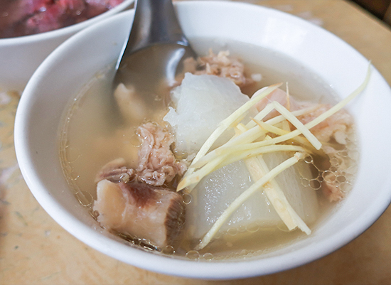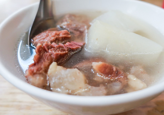 | 台南之食湯水多,從小吃到宴席菜都是此中要角;且濃湯極少,多是澄澈中見芬芳,喝來怡然舒坦。 養得我從小到大都愛湯,日日無湯不歡,無論冬夏都定然餐餐咕嘟咕嘟熱騰騰暖烘烘痛快滿足喝飽。遂而每次返鄉,覓食尋吃總常以湯為目標,此趟年前回南也頗有幾處合心之遇。 首先是「阿牛牛肉湯」,家人慣喝的阿裕本店熄燈後常光顧處。清燙牛肉湯固好,更愛是與蘿蔔同燉的牛雜與牛腩湯,特別前者,肉味脂香膠肥與蔬甘芳澄相映融,好好喝! |