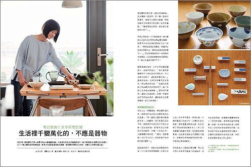 「如同書中的器物心法:『器物是構築美好生活的礎石。』美好的生活看似是一個遠大的目標,但它其實非常貼近;認真對待生活的每一刻,尋求讓自己快樂、喜歡的生活方式。對待器物也是如此,在『選』物、『用』物時多花一點心思,其實生活就會有所不同……」