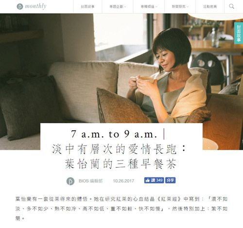 旅遊、美食、室內設計三方面,葉怡蘭都有其獨到見解的堅持。最近她寫了一本新書——《紅茶經》,被紅茶的同好們奉為圭臬,這是她探訪各地紅茶的心血結晶與多年來對醉心於紅茶的心得……