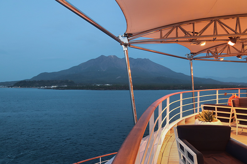 SilverMuse 郵輪相簿第五本,船抵鹿兒島。初度造訪,遂精挑幾處經典名勝重點走踏:薩摩藩島津家的優雅別邸仙巖園、鶴丸城跡,可展望全城景觀的城山公園;還參觀了從形貌到製程均一派古風的白金酒造,享用了在地料理「山映」。最迷人是代表地標「櫻島」,每一時刻、不同視角各見丰姿形狀表情,尤其在自家郵輪上安坐近賞,更覺優越奢華……