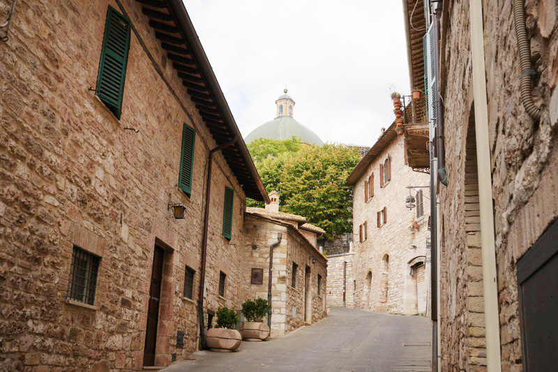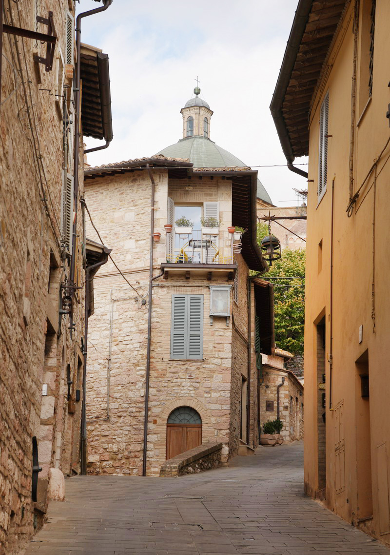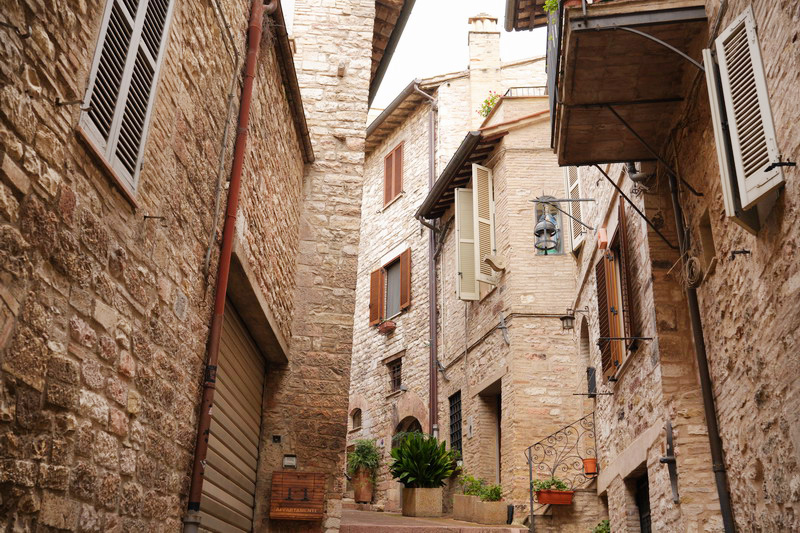 義大利Umbria第三日,來到聖城Assisi。與繁華優美的Perugia不同,合壯絕與清幽於一,一座又一座巍峨恢弘教堂一長列次第雄踞山頂,最著名地標的聖方濟各聖殿更是比例尺度皆懾人。漫步在圍繞教堂而生、沿坡沿山密密交錯分布的房舍屋宇街道,一路閒看比其餘山城更雍容華美的民居與壯麗教堂與以各種不同角度姿態交相映,時刻分秒皆神迷……