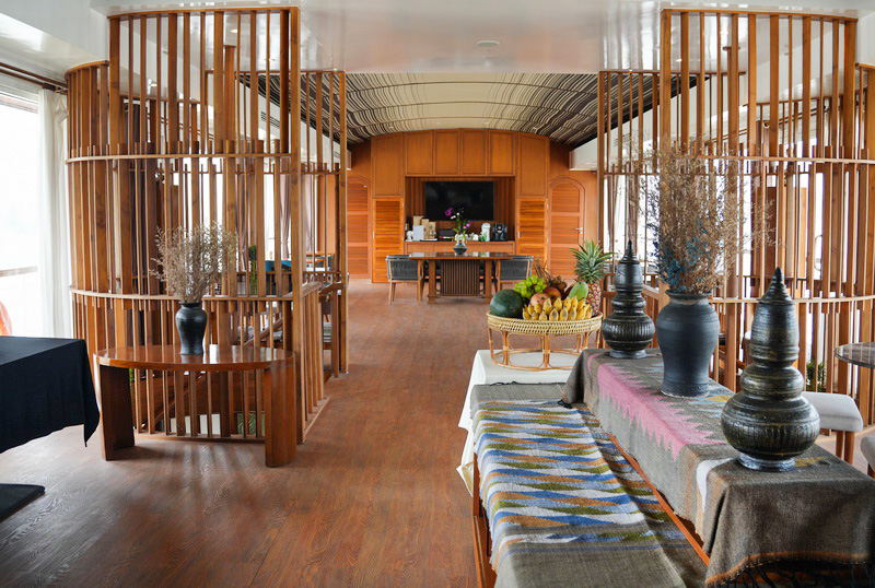 人生初度河輪旅。搭乘的是航行於湄公河上,Mekong Kingdoms旗下的Bohème號。河輪風格簡約俐落明亮,習習流露在地風情。所入住是全船僅只一間、奢華佔去整個船尾的Royal Suite套房,喜其遍開落地大窗,且從臥室到浴室、陽台皆恢弘寬敞得讓人渾然忘卻人在船上。而啟航後沿途風光的優美多端,朝夕徜徉作息飲食此中的悠緩悠閒悠慢,還有首日停泊、以稻作和造船維生的Pha Liep村莊的淳樸寧靜、自足自在,都讓人沉醉陶然……